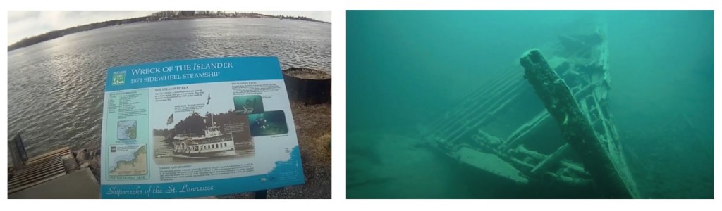 Shipwreck: The Islander is less than 100 feet from shore in about 40 feet of water. The Islander was built in Rochester, N.Y., in 1871. This side wheel steamer measured 125 ft. x 20 ft. x 7 ft. and weighed 118 gross tons. As well as a regular mail carrier between Clayton and Alexandria Bay, The Islander began island and river tours on July 31, 1893. On Sept. 16, 1909, at the dock at Alexandria Bay, the ship caught fire and burnt. Since the tragedy, The Islander has become a favorite dive site, accessible from shore.