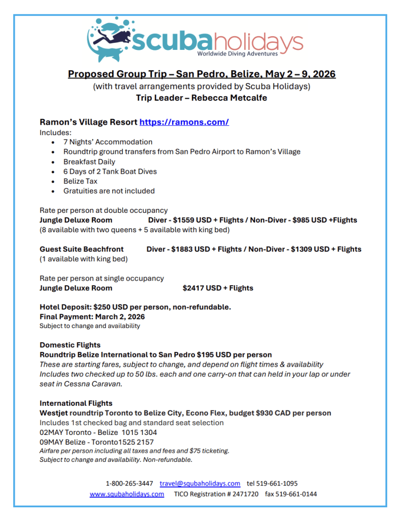 San Pedro, Ambergris Caye, Belize, May 2 – 9, 2026