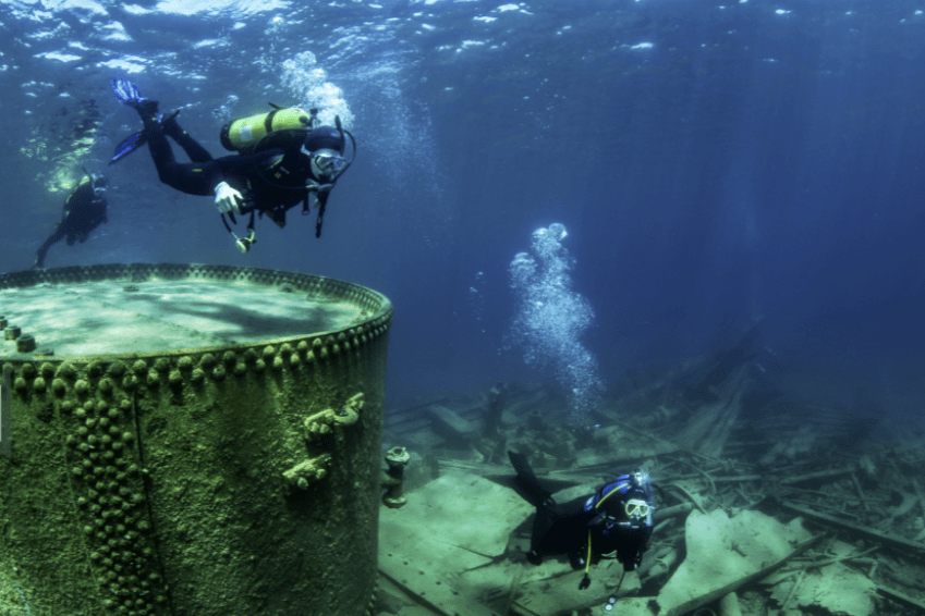 How’s this for a great shore dive site! Picturesque, limestone ledges, underwater boulders, crayfish! Toby is considered the freshwater shipwreck capital of Canada with fabulous shore diving, interesting shipwrecks as well as a cavern grotto and cool clear water.