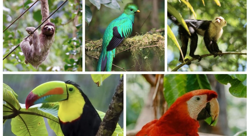 White-faced capuchins thrive in the cloud forests of Costa Rica. They are considered the most intelligent of the new world monkeys, and use tools such as a rock as a hammer or a log as an anvil to crack open nuts. They have a prehensile tail.