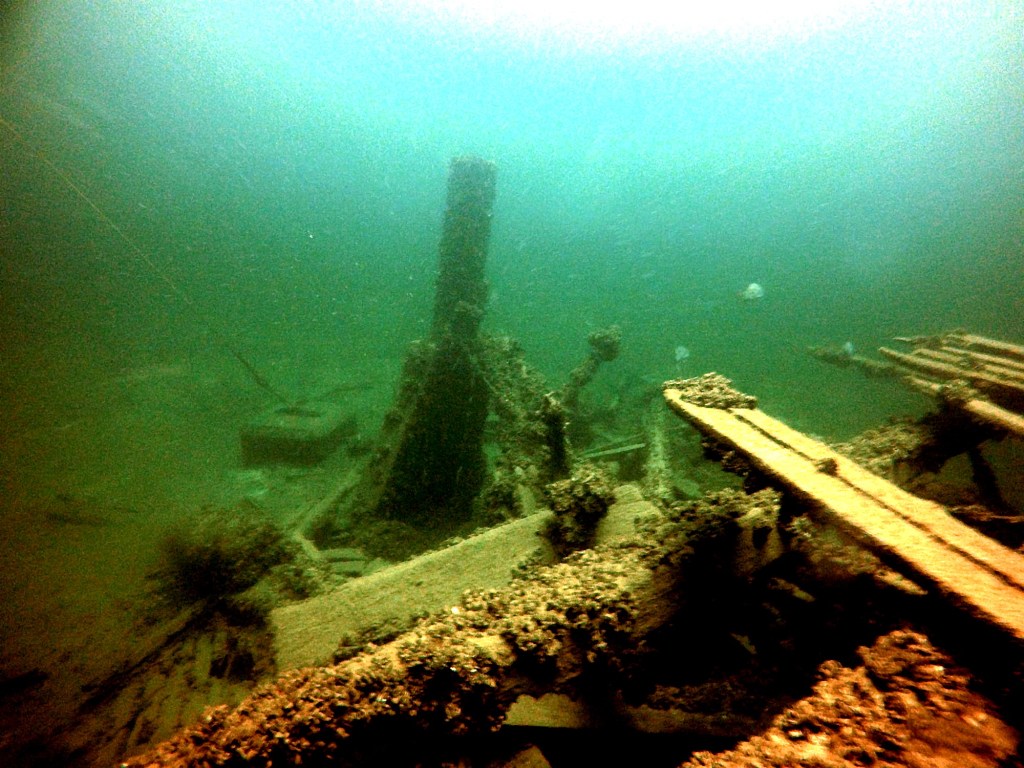 This wreck is named for its proximity to the Kingston Psychiatric Hospital. It is also known as the Water Lily. It’s a wooden double boiler wreck. The back of the wreck is destroyed but the rest of the ship is in decent condition. It is protected by shoals from a lot of the lake effect weather. There are two parallel boilers. The depth is approximately 60 ft. The KPH has been roughly measured to 135 ft long.