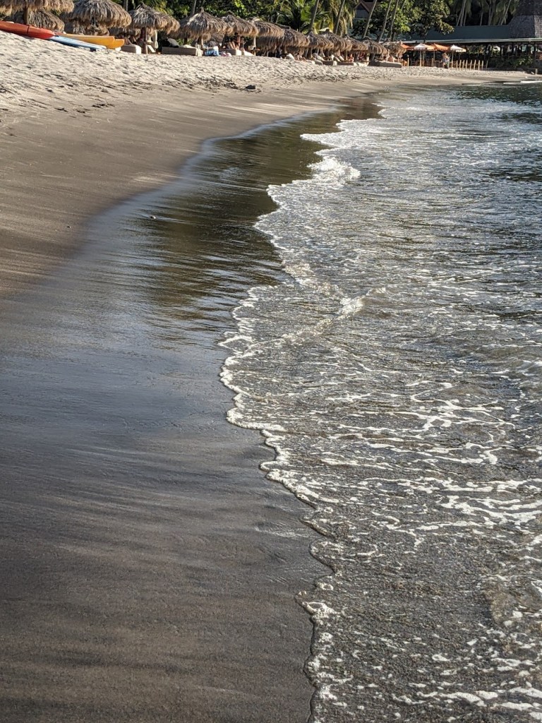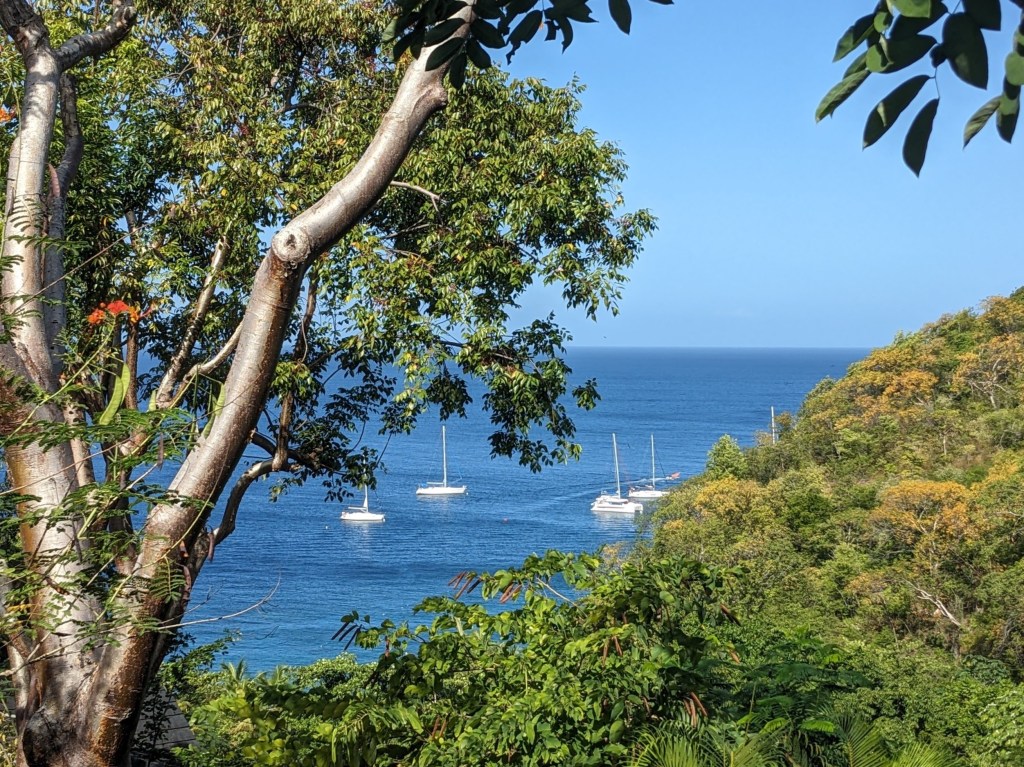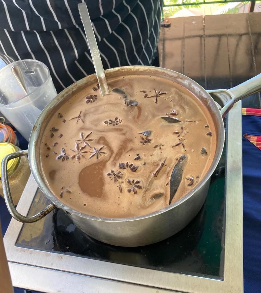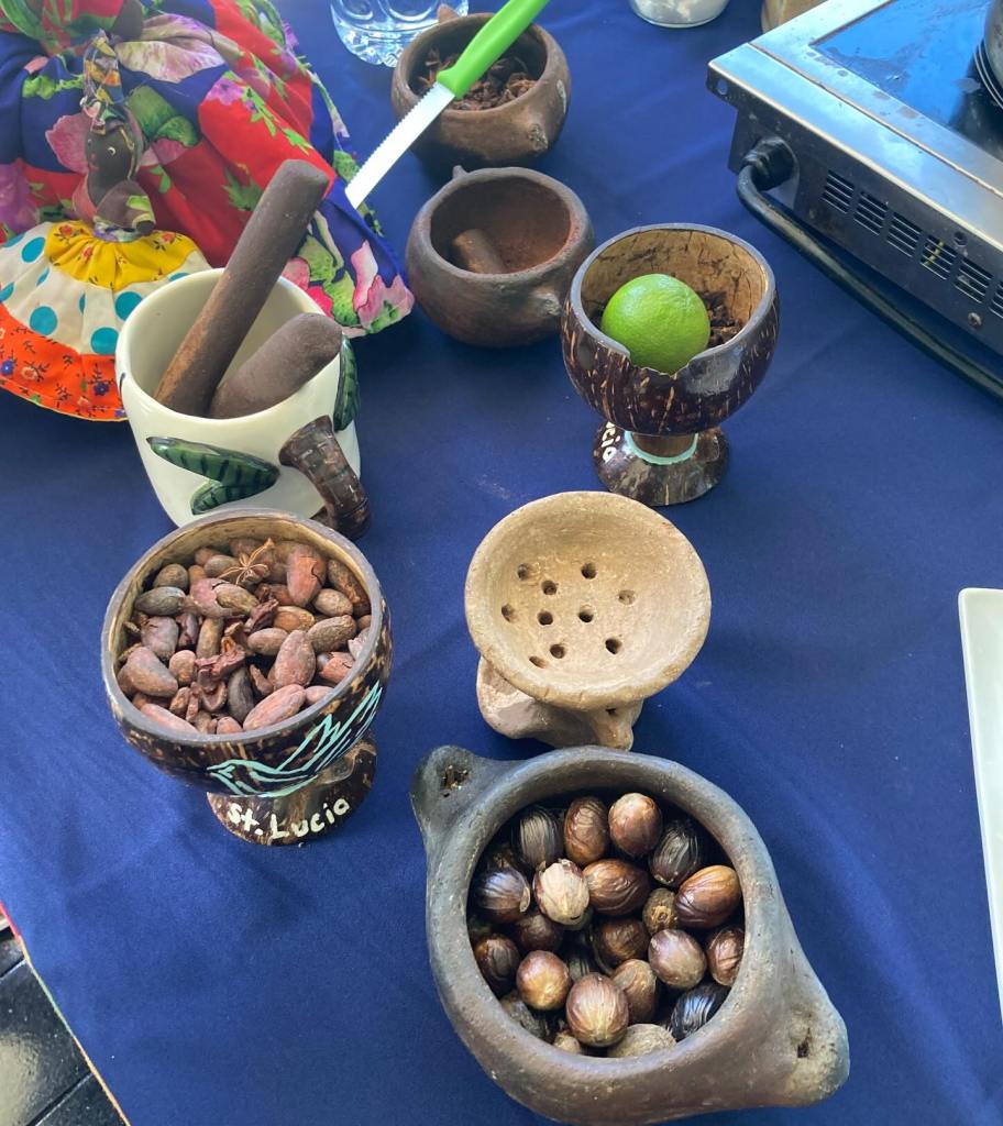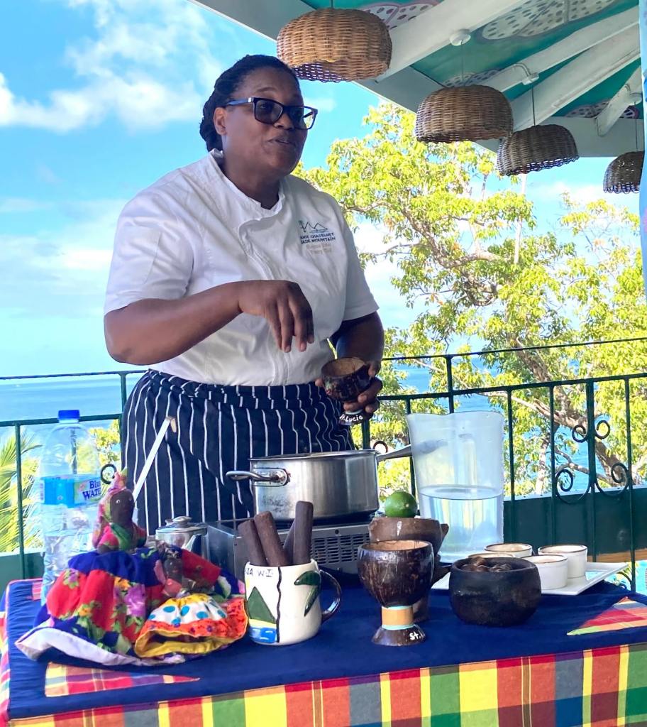 Cocoa Tea is made with cocoa, star anise, cloves, nutmeg, bay leaves, and sometimes cinnamon, but not for us this time, as well as coconut milk and arrowroot powder. Served with a dose of local storytelling in a picturesque setting overlooking the sea and Pitons. This treat was prepared for us by Sherma, the head of the bakery and chocolate department of Anse Chastanet.