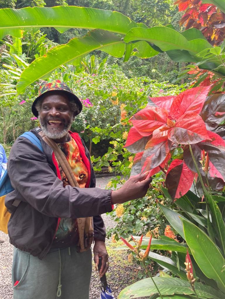 Alexander the Great was our effusive, fact-filled guide through the lush vegetation and flowers of the Botanical Gardens and on to the picturesque Diamond Falls.