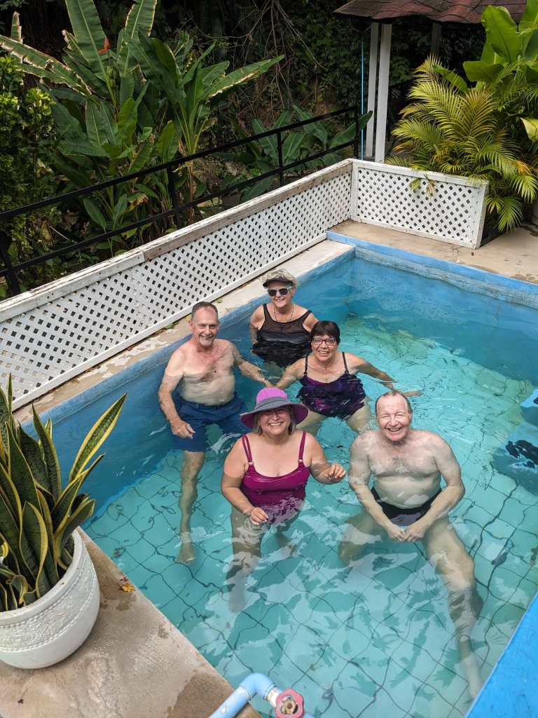 Inappropriately named as a “drive-through”, but a fascinating visit to the volcano nonetheless. Dave organized a bus trip to take us the edge of the volcano, and a walking tour to get even closer! The thick volcanic ooze is boiling up before our eyes — Don’t fall in! (We skipped the tourist mud baths, but judging from the lineups, they are popular.) This is our remaining group of 10 adventurers who stayed an extra few days for sightseeing.