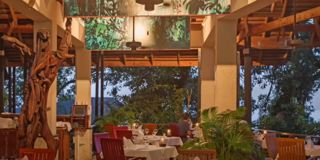 Up the hill for other restaurants for breakfast & dinner, Tree House Bar, guest services and reception.