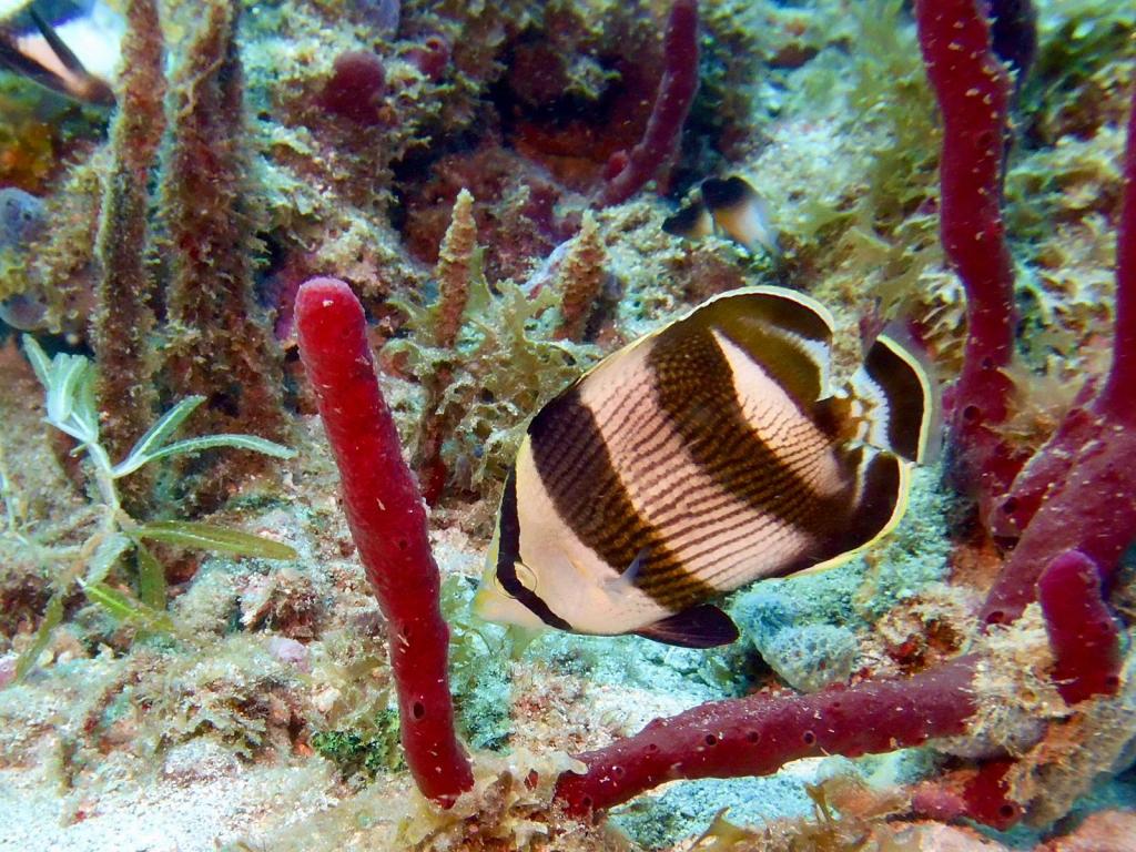 . - Turtle Reef – Yes, we did see turtles! This crescent-shaped reef off shore from Anse Chastanet is a favourite with many divers. It drops quickly from a plateau area of around 40 feet to approximately 150 feet. From the spectacular pillar coral and barrel sponges in the shallows, to the deeper soft corals and ledges below.