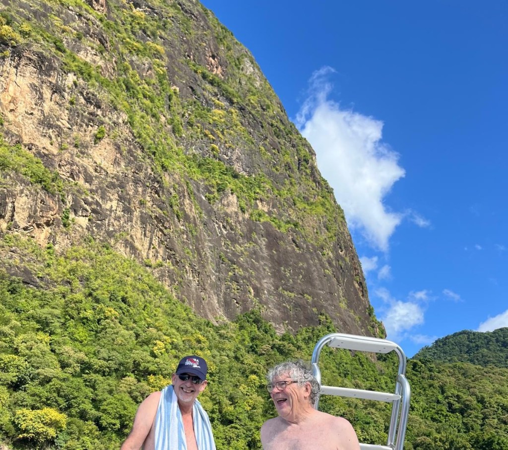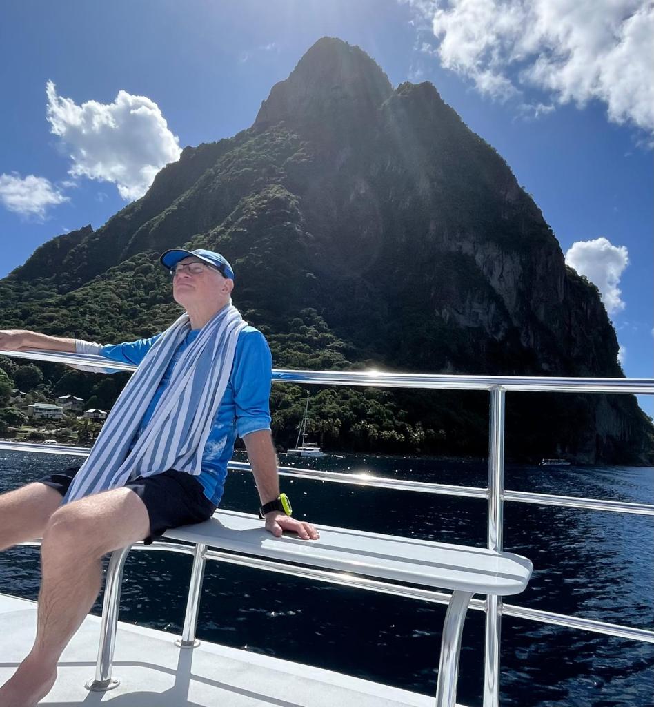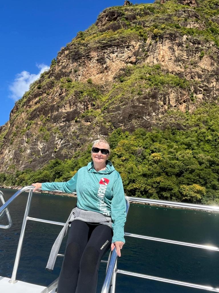 We are so very fortunate to have our trip leader, Rebecca Metcalfe, creating such fantastic diving vacations for us! Two trips this year! The latest trip was to the beautiful island of St. Lucia in the Caribbean for a week of diving at the start of the dry season. We started our vacation together on Nov. 30, 2025 with 25 excited adventurers: comprising 13 scuba divers and 12 snorkellers, ready for the warmth and sunshine of this tropical isle.
