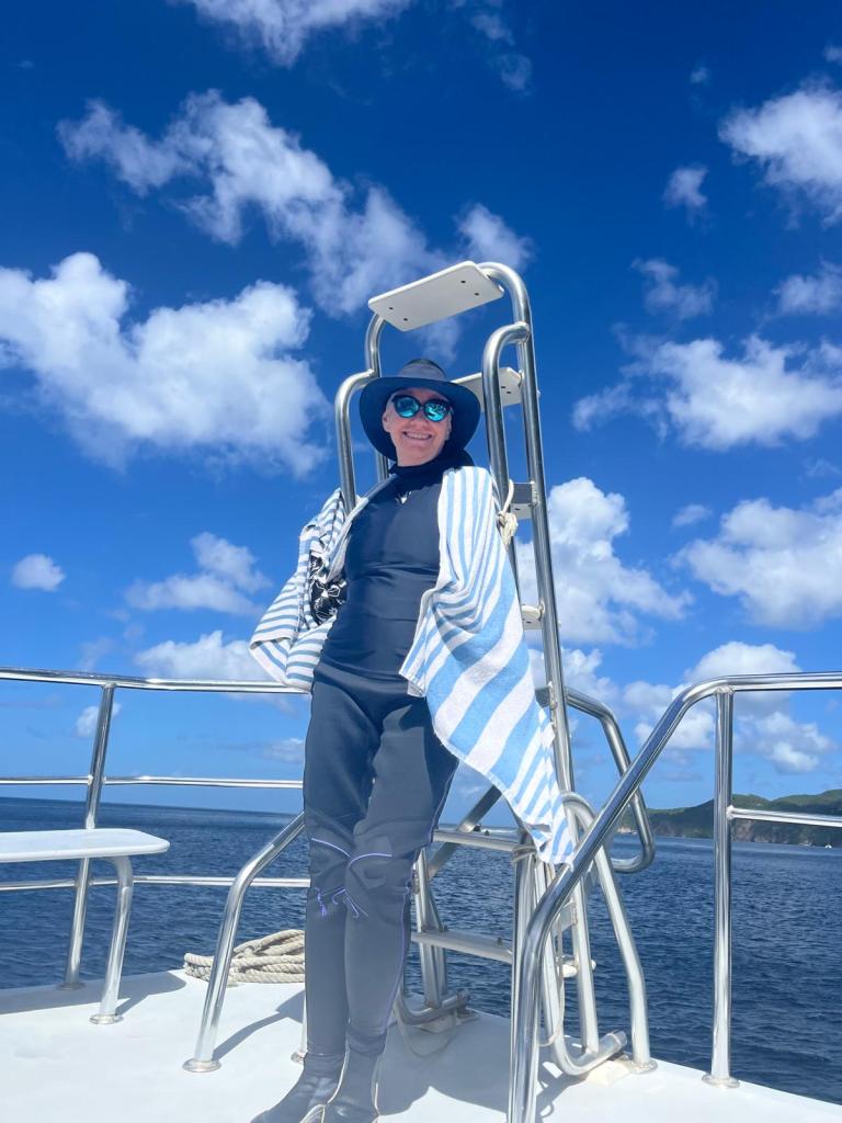 We started diving on Dec. 1 with a check-out dive from the beach in front of the Scuba St. Lucia dive shop with our guides, Omo and Tory, on the house reef, exiting onto the dive boat ready for our second dive of the day.